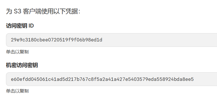 保存密钥:创建成功后,记录 Access Key ID 和 Secret Access Key。